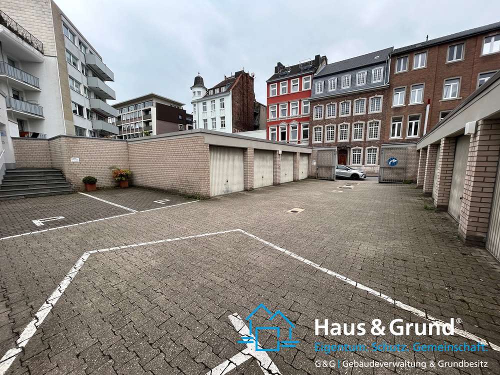 Der Innenhof mit den Garagen und Stellplätzen bietet also ausreichend Parkmöglichkeiten, was in einer Innenstadtlage wie Aachen besonders vorteilhaft ist.