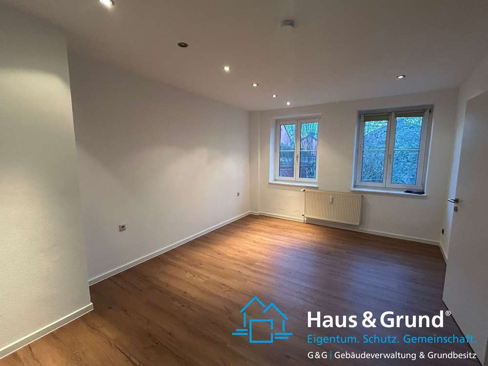 Wohn- und Schlafzimmer sind mit einem neuen, pflegeleichten Vinylboden ausgestattet, im Obergeschoss ist Laminat verlegt. Die Küche ist gefliest.