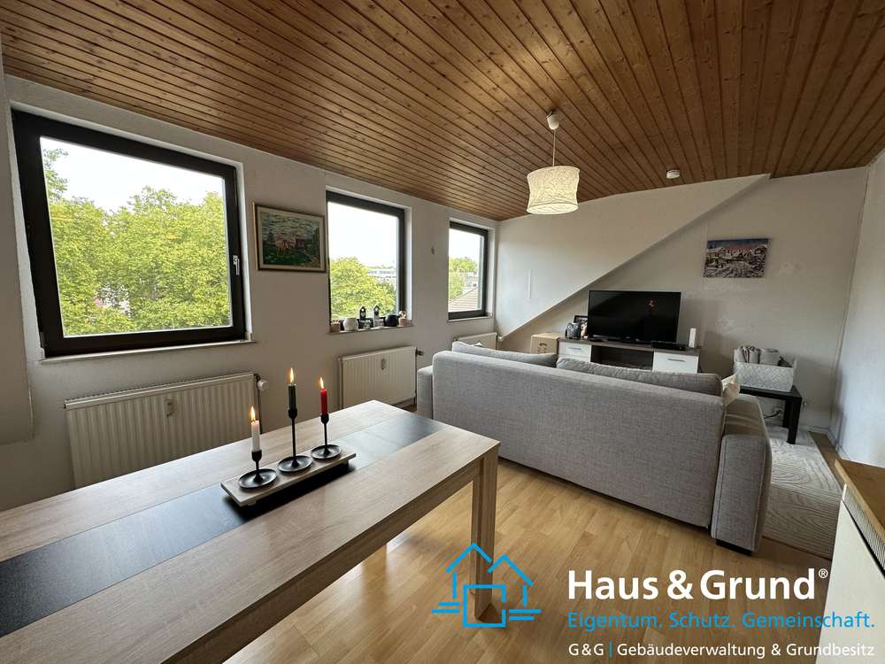 Die charmante 2-Zimmer-Wohnung liegt im Dachgeschoss des charismatischen 3-Fenster-Hauses bestehend aus insgesamt 5 Etagen.