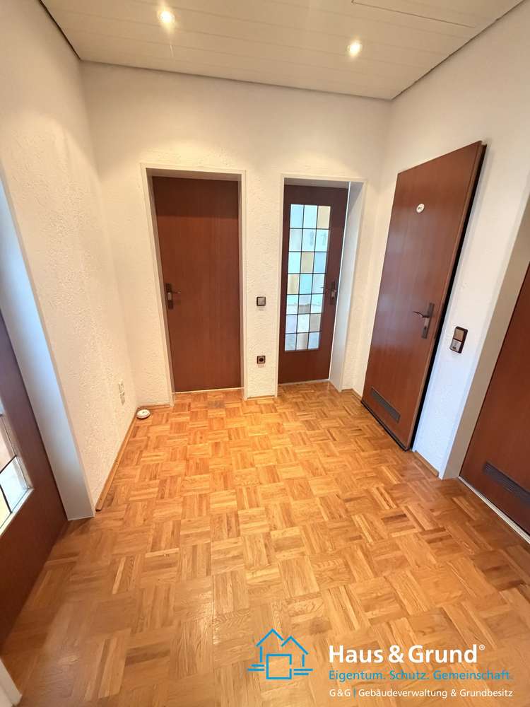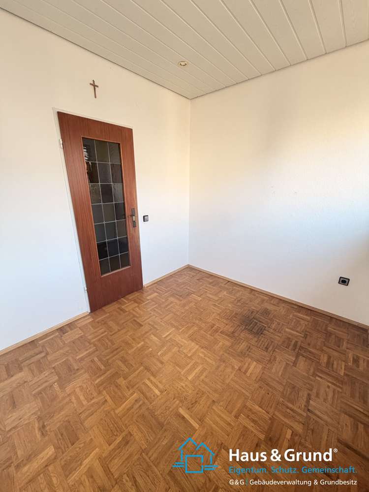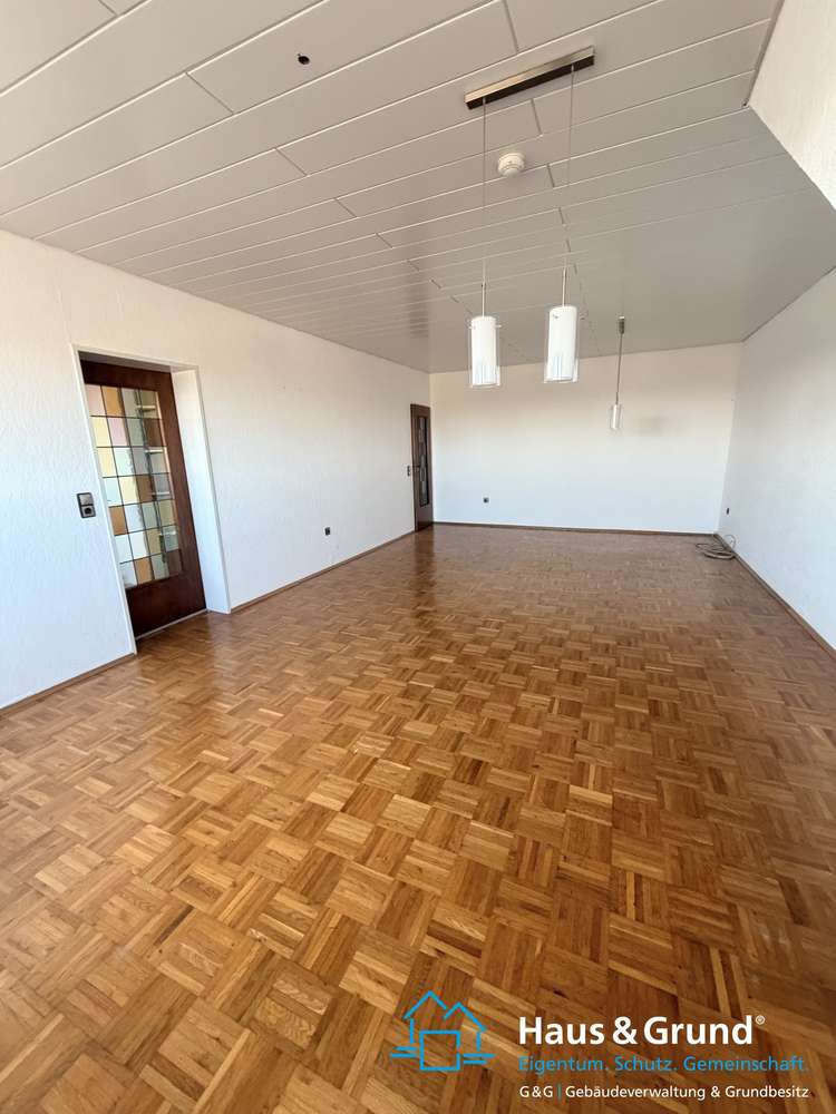 Die Wohn- und Schlafzimmer sind mit Parkettboden ausgelegt und sehr lichtdurchflutet. Die Decken sind mit weißen Paneelen versehen und mit modernen Spots ausgestattet, die Wände sind in weißer Raufaser tapeziert. Auch das Wohnzimmer ist hell gestaltet, mit der gleichen Kombination aus Paneelen und Raufaser.